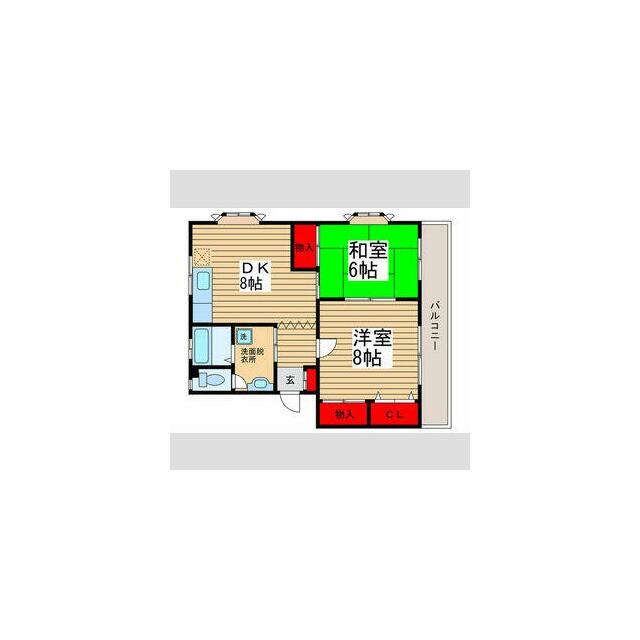 | 間取り | 2DK(洋8 x 和6 x DK8) | 主要採光面 | 南東 |
